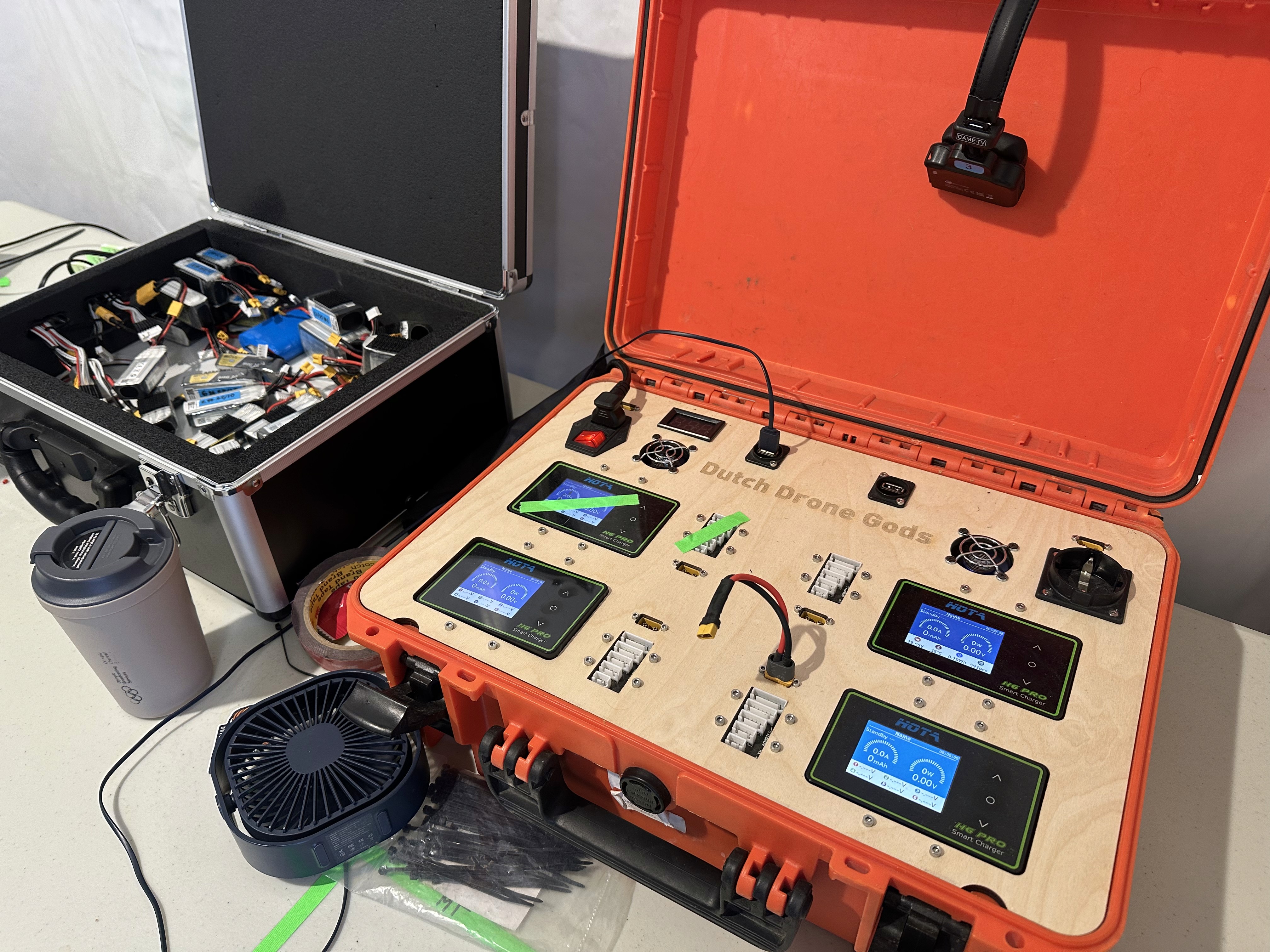 With the high quality demands from the broadcast, as well as safety and performance aspects, we needed to build a new drone specifically for this job. This was a big challenge, since the broadcasting hardware (COFDM Camera + Transmitter) are expensive and heavy, while the drone needs to remain under 250 grams for regulations. Our engineer Thomas set out to design and build this, with Ralph and Bas helping on the flying and tuning aspect of it. Half a year later we had it: a unique 243g broadcast drone, capable of 120kph as well as outputting smooth and high quality video for broadcasting. Not only that, the camera can be shaded live from the OB truck, even while flying.