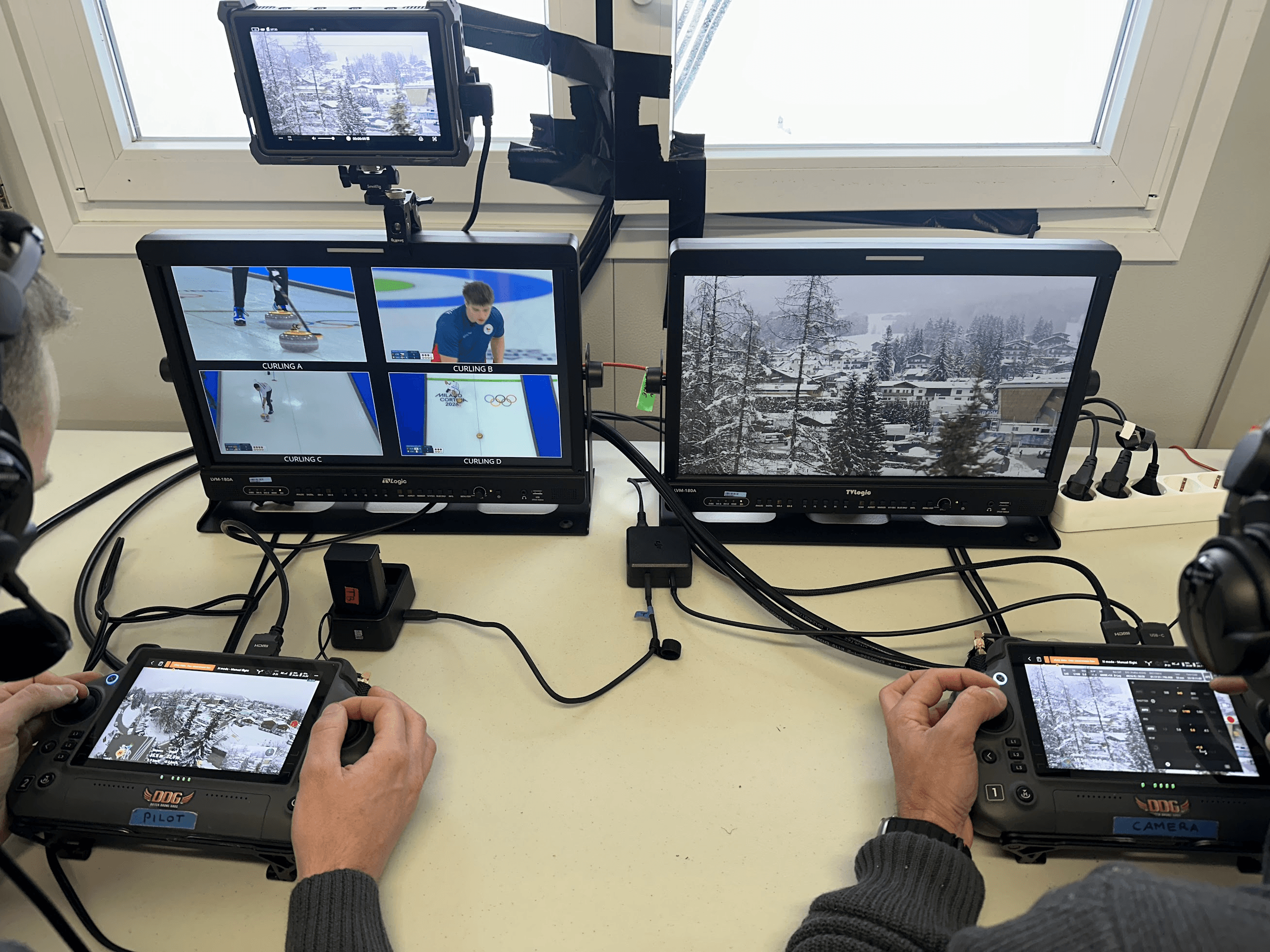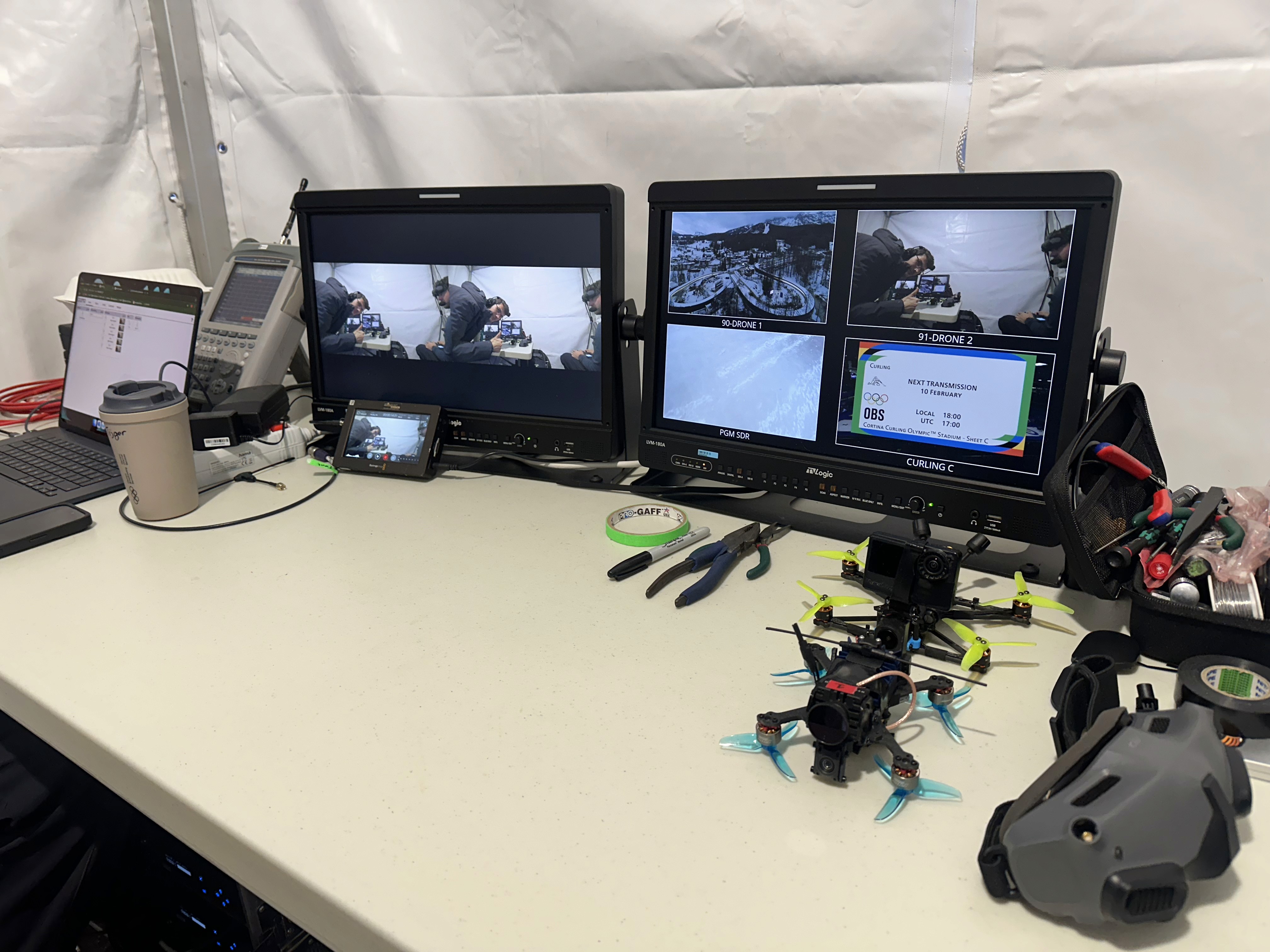 Besides the FPV drone, we also provided a team with our DJI Inspire 3 drone for the overview / ‘beauty’ shots of the Sliding and Curling venue, giving the director some beautiful overview shots of the venues with the mountains in the background, to use in both the Sliding and Curling broadcasts.